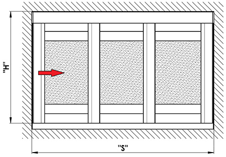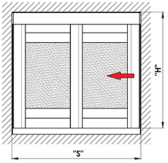| Velikost otvoru | Šířka S (mm) | Výška H (mm) | ||